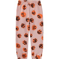 Weiche rosa Jogginghose aus Bio-Baumwolle mit einem orangefarbenen Basketball-Print. Die Jogginghose hat eine normale Passform, einen elastischen Bund, einen internen Kordelzug, Seitentaschen und elastische Bündchen an den Knöcheln.