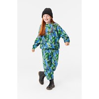Grüne Jogginghose aus Öko-Baumwolle mit gebürstetem Innenfutter, die weich und warm zu tragen sind. Die Hose hat eine reguläre Passform, Seitentaschen, elastische Knöchel, einen elastischen Bund und eine interne Kordel. Der Druck ist ein Allover-Druck von blau-lila Schmetterlingsbüschen mit fliegenden Schmetterlingen in schönen Farben. Kombinieren Sie die Hose mit einem passenden Pullover für ein komplettes Set.