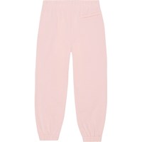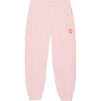 Rosa Hose aus Öko-Baumwolle mit einem kleinen roten gestickten Yin- und Yang-Symbol. Die Hose hat einen elastischen Bund mit innenliegendem Kordelzug, der für eine gute Passform sorgt und das Anziehen erleichtert. Die Hose hat Taschen an der Seite und einen Gummizug unten an der Hose, der ihr etwas Weite verleiht.