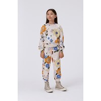 Off-White Jogginghose mit Allover-Blumendruck. Ein einfacher, von Hand gezeichneter Grafikdruck. Der Druck besteht aus vielen verschiedenen Blumen, wie Sonnenblumen und Dahlien, in Rosa- und Gelbtönen. Diese Jogginghose besteht aus 100% Baumwolle, hat einen Gummizug und einen Innenbund an der Taille, Seitentaschen, eine Hintertasche, Gummizüge an den Füßen und eine reguläre Passform. Kombinieren Sie evt. diese Jogginghose mit dem Sweatshirt Maxime im selben Aufdruck für ein super cooles Set.