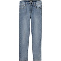 Adele ist eine hellblaue Jeans mit Stretch. Die Hose hat Taschen vorne und hinten sowie Gürtelschlaufen. Die Hose schließt mit einem Knopf und einem Reißverschluss.