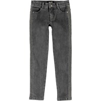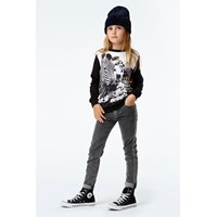 Adele ist eine graue Slim-fit-Jeans in einem verwaschenen Look mit grauem Velourband und etwas Glitter an den Seiten. Die Hose hat Vorder- und Hintertaschen. Beachten Sie bitte, dass Größen bis einschließlich 134 einen Druckknopf und keinen normalen Jeansknopf haben.