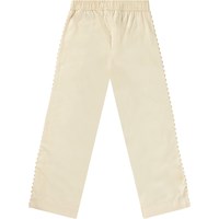 Hose aus Öko-Baumwolle. Die Hose hat einen elastischen Bund, lange Beine und schöne Bänder, die an den Seiten der Beine entlang laufen.