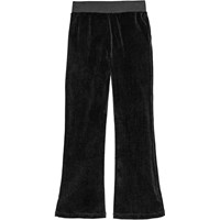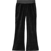 Schwarze Samthose aus weicher Baumwolle mit einer ausgestellten Trompetenform. Die Hose hat einen breiten elastischen Bund mit einem internen Kordelzug, was sie einfach anzuziehen und bequem zu tragen macht. Kombinieren Sie die Hose mit einer passenden Strickjacke für ein weiches und sportliches Outfit.
