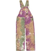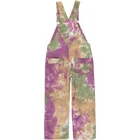 Aer ist eine Latzhose mit buntem Batikdruck. Die Hose hat eine Tasche auf der Vorderseite und verstellbare Hosenträger.