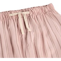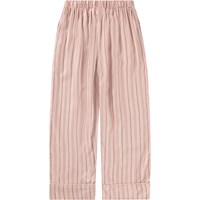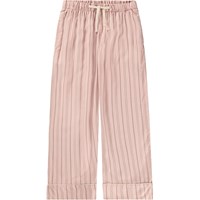 Rosa Pyjamahose mit Streifen und Umschlägen. Die Hose hat gerade Beine, einen elastischen Bund mit Kordelzug sowie Seitentaschen.