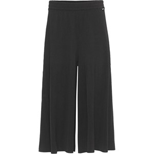 Aldora ist eine schwarze kleine, plissierte Culotte-Hose, die schön fällt. Die Hose hat einen elastischen Bund, wodurch die Hosenärmel angenehm zu tragen sind.