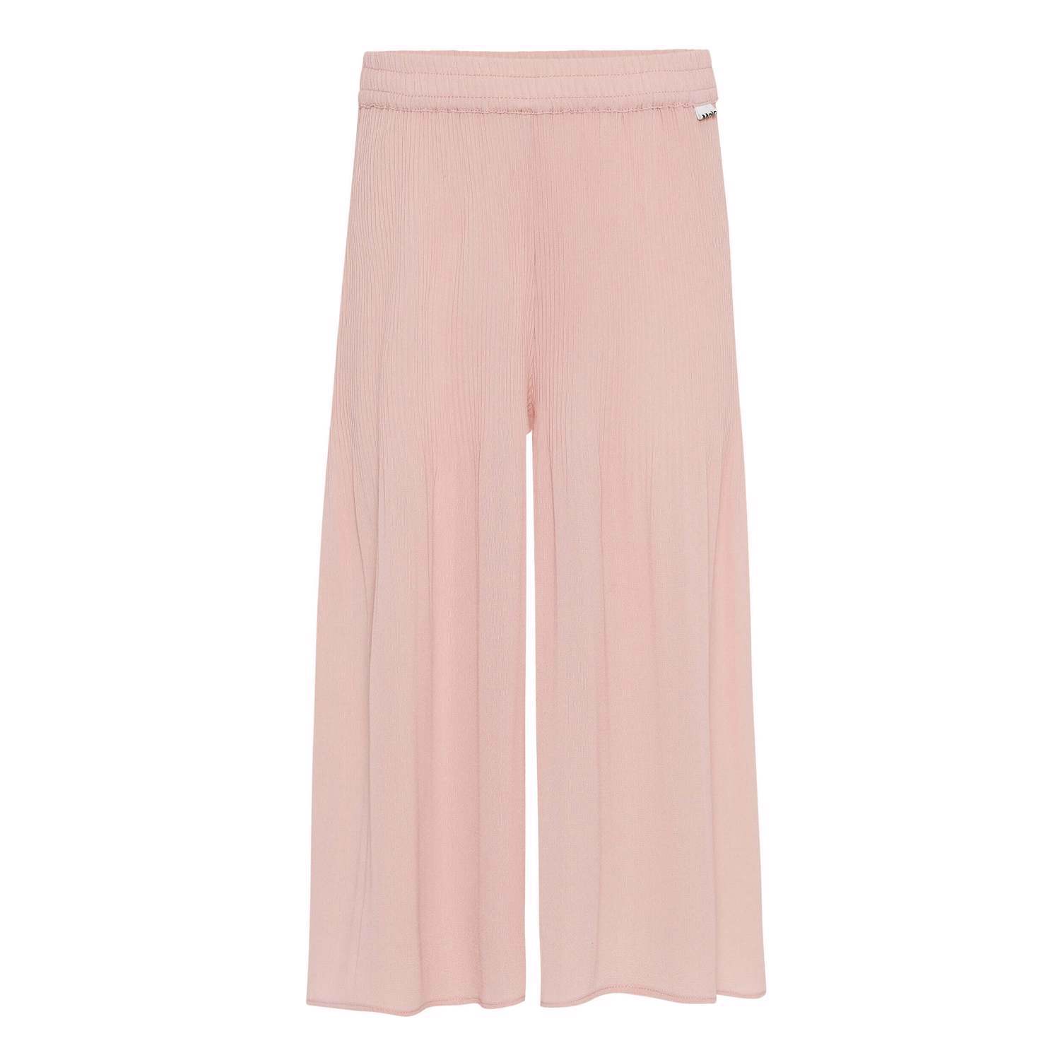 Aldora ist eine rosafarbene, plissierte Culotte-Hose, die schön fällt. Die Hose hat einen elastischen Bund, wodurch die Hosenärmel angenehm zu tragen sind.