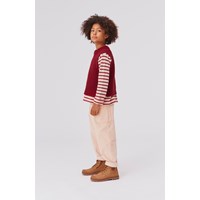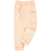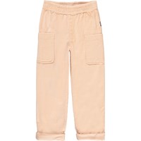 Alfia ist eine rosafarbene Samthose mit einer lässigen und weiten Passform und Falten an der Unterseite. Die Hose hat aufgesetzte große Taschen seitlich an den Beinen, sowie einen elastischen Bund.