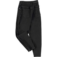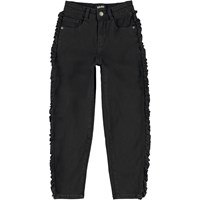 Allis ist eine Vintage-inspirierte schwarze Jeans mit lockerer Passform und einer coolen Fransenkante an den Seiten. Die Hose hat Vorder- und Hintertaschen. Beachten Sie bitte, dass Größen bis einschließlich 134 einen Druckknopf und keinen normalen Jeansknopf haben.