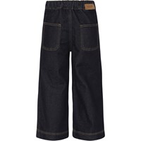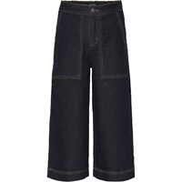Alyna ist eine dunkelblaue Culotte-Jeanshose mit großen Außentaschen auf der Vorderseite. Alyna besteht aus 100 % Öko-Baumwolle.