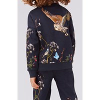 Amina ist eine dunkle Jogginghose mit Aufdrucken verschiedener Beeren, Blumen und Vögel. Kombinieren Sie die Hose mit dem passenden Sweatshirt.