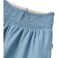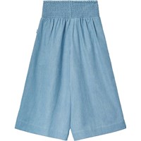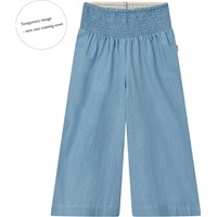 Weite Hosen aus Öko-Baumwoll-Chambray. Die Hosen fallen schön aus dem weichen Baumwollstoff und haben einen breiten Bund, der mit einem gerafften Effekt genäht ist, was sie einfach anzuziehen und angenehm zu tragen macht.