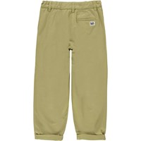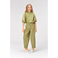 Anika ist eine grüne Chinohose mit lockerer Passform. Die Hose kann sowohl mit als auch ohne Träger getragen werden.