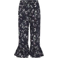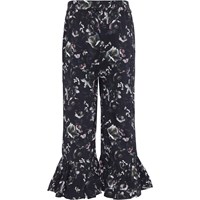Anis ist eine dunkle Culotte-Hose mit dem Blumen-Druck 'Moonlight Garden'. Die Hose hat unten einen Rüschenkante und eine elastische Taille, die für eine bequeme Passform sorgt.