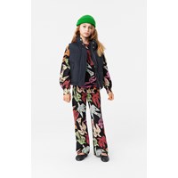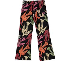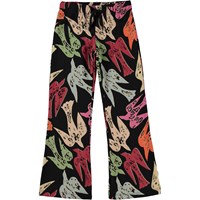 Schwarze Jerseyhose aus Öko-Baumwolle mit einem elastischen Bund und einer Kordel, die das Anziehen erleichtert und angenehm zu tragen ist. Die Hose hat eine ausgestellte Silhouette und einen mehrfarbigen Schwalben-Print. Kombinieren Sie sie mit einem passenden Pullover für ein komplettes Set.