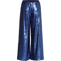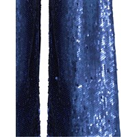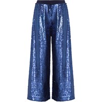 Annette ist eine festliche Hose mit blauen Pailletten. Die Hose hat eine elastische dunkelblaue Taille und eine lockere Passform.