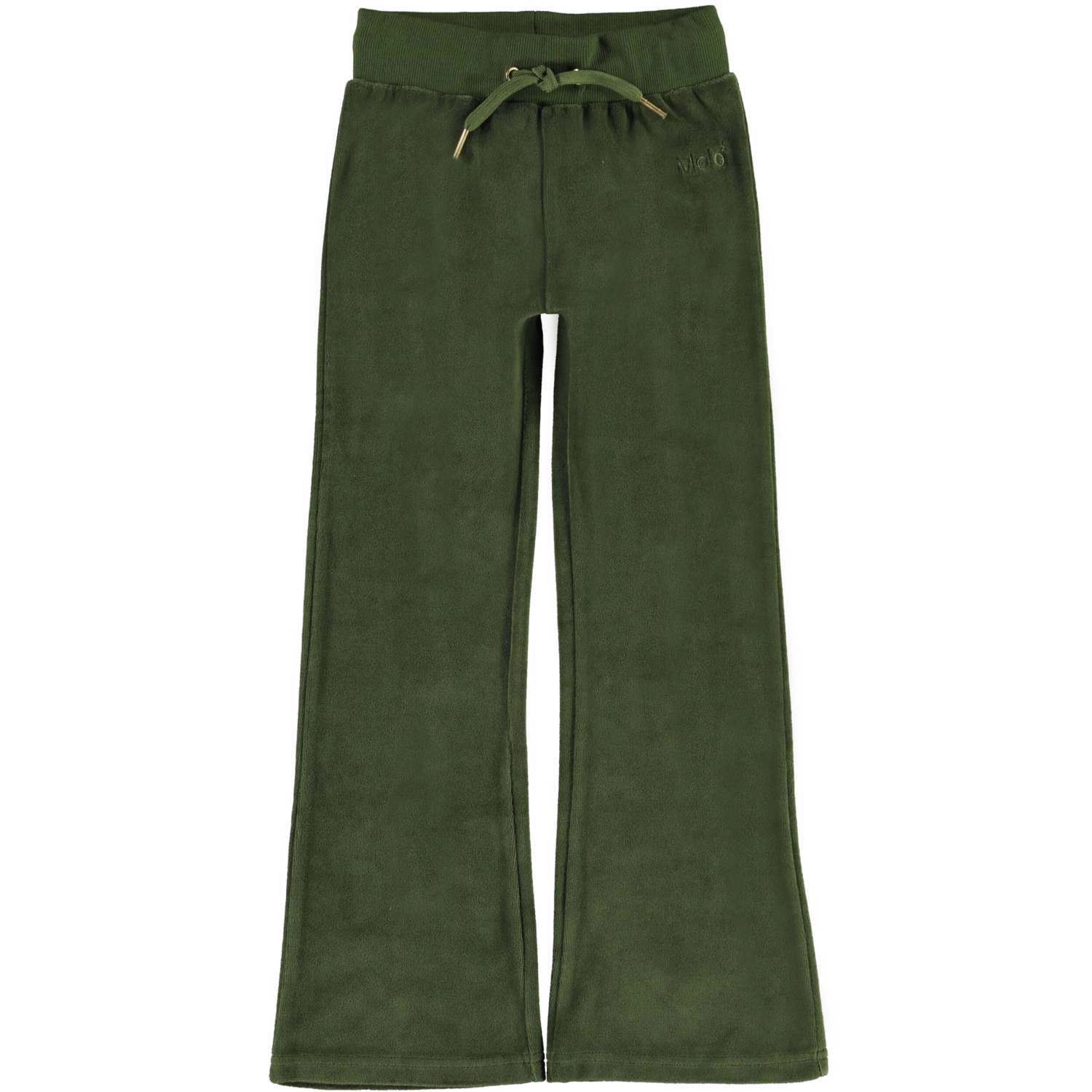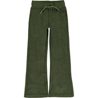 Annie trägt eine grüne Jogginghose aus Velours. Die Hose hat unten einen leichten Schlag und einen elastischen Bund mit Bindeband. Kombiniere die Hose mit dem passenden Hoodie für einen kompletten Look.