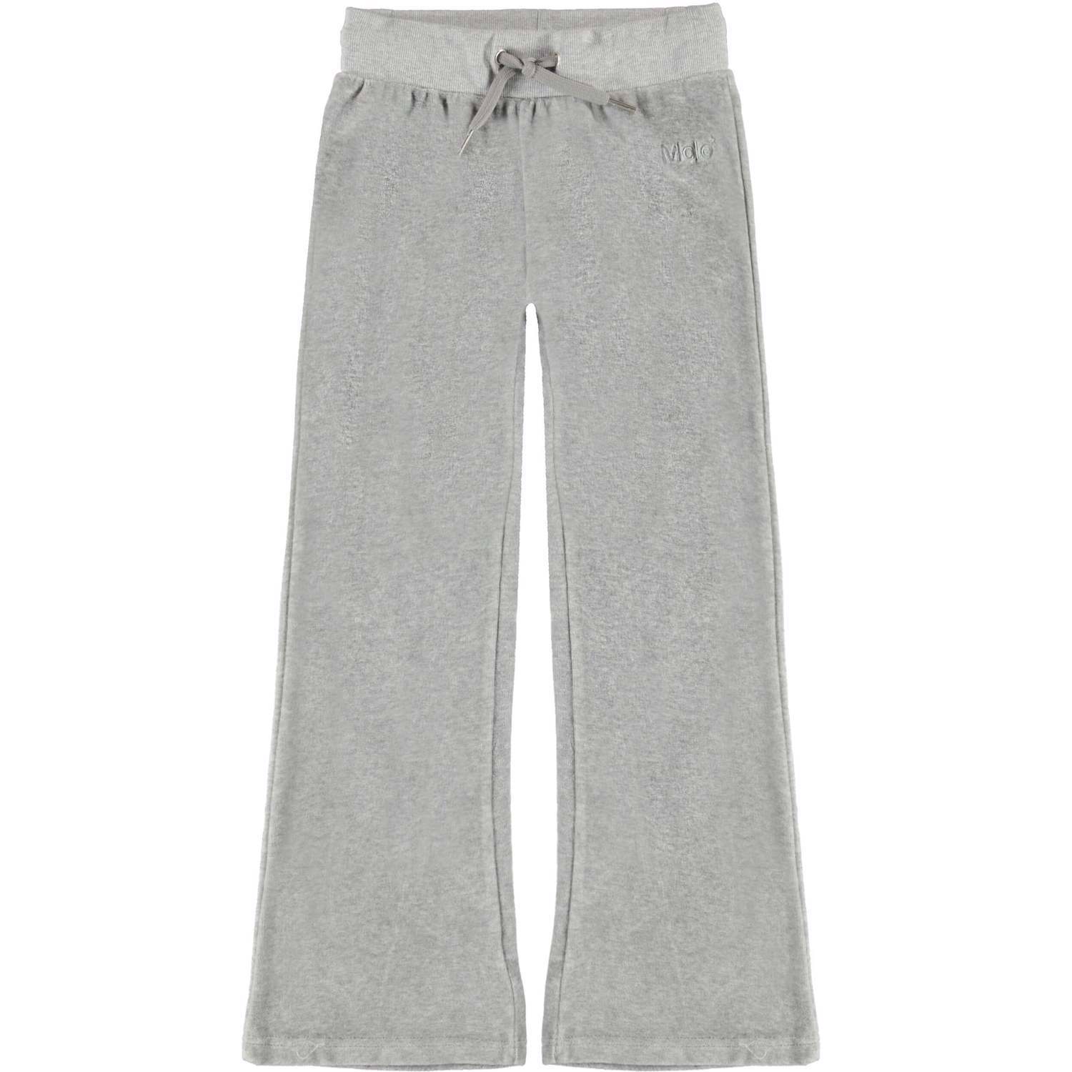 Annie ist eine hellgraue Jogginghose aus Velours. Die Hose hat unten einen leichten Schlag und einen elastischen Bund mit Bindeband. Kombiniere die Hose mit dem passenden Hoodie für einen kompletten Look.