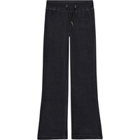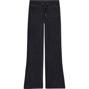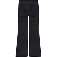 Schwarze Velours-Trainingshose mit Schlag. Diese Trainingshose ist aus einer Baumwoll-/Polyestermischung gefertigt, hat einen breiten gerippten Saum mit Bändern an der Taille, Schlag in den Hosenbeinen, aufgenähte Hintertaschen und eine normale Passform. Kombinieren Sie evt. diese Hose mit dem Hoodie, Milla, in der gleichen Farbe und dem gleichen Material, was für ein süßes Set.