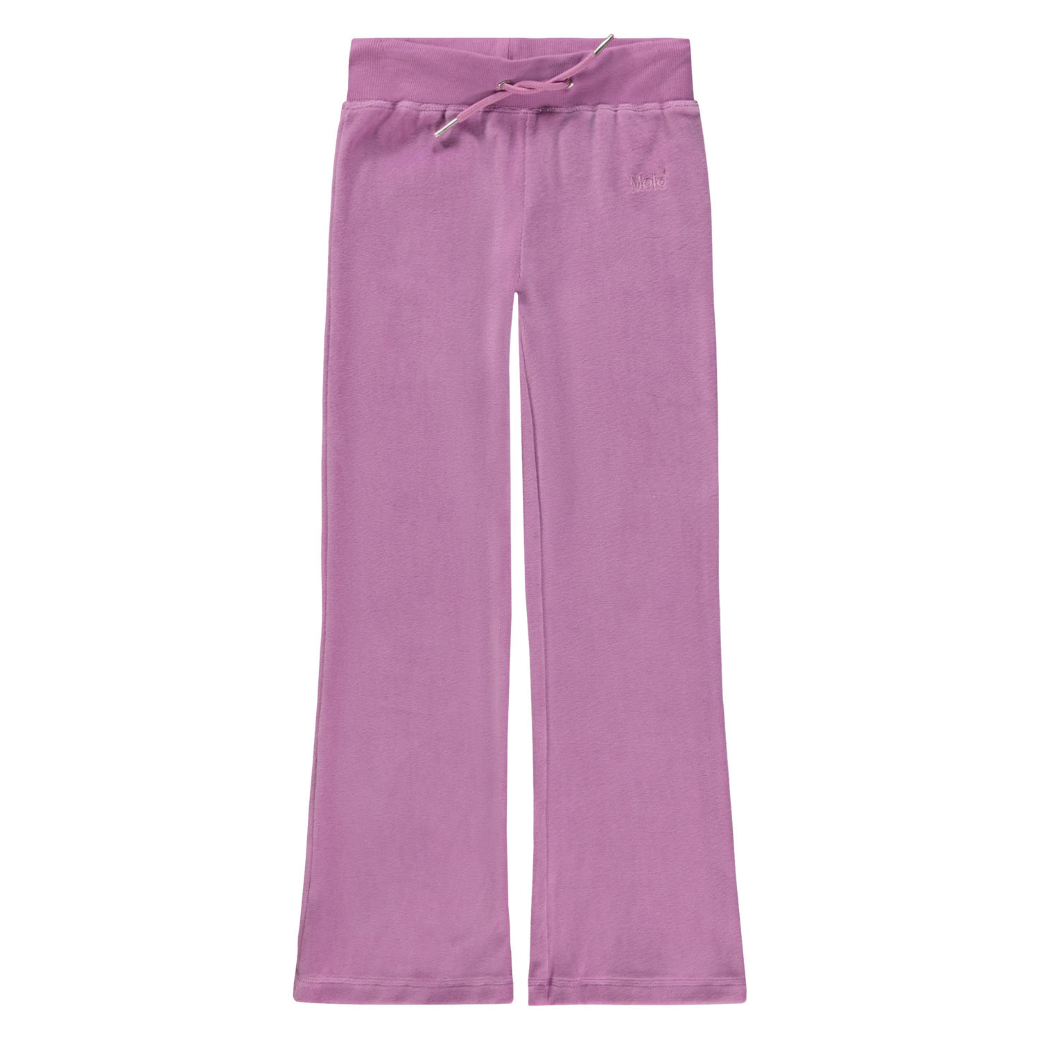 Lila Velours-Jogginghose mit Schlag. Diese Trainingshose ist aus einer Baumwoll/Polyester-Mischung, hat einen breiten, gerippten Saum mit Bändern an der Taille, Hosenbeine mit Schlag, aufgenähte Hintertaschen und eine reguläre Passform. Kombinieren Sie evt. diese Hose mit dem Hoodie, Milla, in der gleichen Farbe und dem gleichen Material, was für ein süßes Set.