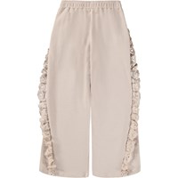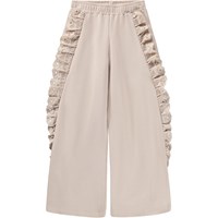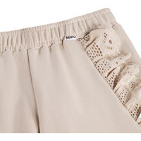 Nude Hosen aus weichem, biologischem Baumwolljersey mit elastischem Bund für eine bequeme Passform. Die Seiten sind mit geraffter Broderie Anglaise verziert, was Textur und einen eleganten Look verleiht. Die Hosen sind locker geschnitten und haben eine weite Silhouette, die gute Bewegungsfreiheit und einen einzigartigen Look bietet.