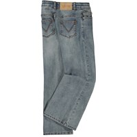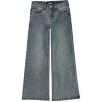 Blaugraue Jeans mit Bootcut. Diese Jeans besteht aus Baumwolle und recyceltem Polyester mit 2 % Elasthan, was für guten Komfort und Bewegungsfreiheit sorgt. Sie hat Seitentaschen, Hintertaschen, Bootcut und eine normale Passform. Die Taille der Hose kann mit einem internen verstellbaren Gummizug angepasst werden, sodass sie für alle Kinder perfekt passt. Die Größen 92–134 haben Druckknöpfe, sodass die Hose leicht an- und auszuziehen ist – die Größen 140–176 haben normale Jeansknöpfe.