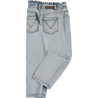 Astrid ist eine gebleichte Jeans mit lockerer Passform und femininer Kante an der Taille. Die Hose hat Vorder- und Hintertaschen. Beachten Sie, dass Größen bis einschließlich 134 einen Druckknopf haben und keinen normalen Jeansknopf.