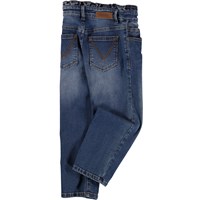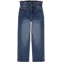Astrid ist eine hoch taillierte blaue Jeans. Die Hose hat an der Taille einen Faltenrand. Diese Hose enthält 1 % Elastan, wodurch sie sich leicht bewegen lässt.