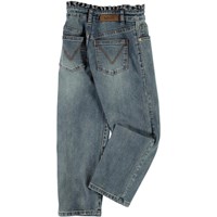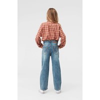 Astrid ist eine hoch taillierte Jeans in einem verwaschenem Blau. Die Hose hat eine plissierte Kante in der Taille. Diese Hose enthält 1% Elasthan, wodurch sich das Bewegen einfach macht.