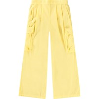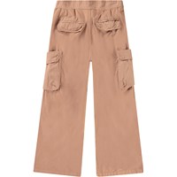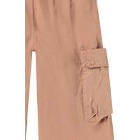 Braune Hose aus Öko-Baumwolle. Die Hose hat auf jeder Seite des Oberschenkels aufgesteppte Taschen. Der Bund der Hose ist vorne fest und hinten elastisch, was für eine gute Passform und einfaches Anziehen sorgt. Die Hose hat vorne weite Beine, was ihr Weite und einen lässigen Look verleiht.