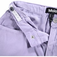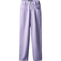 Hellviolette Jeans aus Denim mit passenden Nähten aus Baumwolle und Viskose. Diese Jeans haben Ziernähte vorne und zwei Seitentaschen.