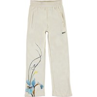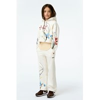 Aurita ist eine helle Jogginghose mit Blumen-Druck an dem einen Bein. Die Hose hat Taschen und eine elastische Taille. Kombiniere die Hose mit einem passenden Hoodie.