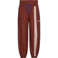 Oleen ist eine hoch taillierte Trainingshose in Braun mit einem rosa Streifen an einem Bein. Die Hose hat eine breite elastische Taille mit einem blauen Bindeband. Die Hosen sorgen für den richtigen Komfort und die richtige Flexibilität und sorgen dafür, dass die Bewegung nicht behindert wird. Diese Hose ist Teil der Sportkollektion von Molo, die dazu beiträgt, Mode und Sport enger miteinander zu verbinden. Die Sportkollektion von Molo basiert auf einer einzigartigen Hochleistungstechnologie namens HeiQ Smart Temp, die die natürliche Kühlung des Körpers unterstützt. Die Kühlfunktion wird aktiviert, wenn der Körper heiß und verschwitzt wird. Die Kühlfunktion aktiviert, wenn der Körper abgekühlt ist. HeiQ Smart Temp sorgt für optimalen Komfort und Leistung. Unabhängig getestet als hautsicher.