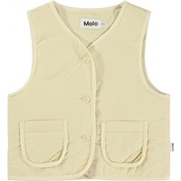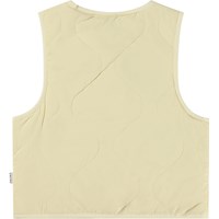 Hellgelbe Steppweste mit kantenband. Diese Weste besteht aus 100% Nylon, hat einen V-Ausschnitt, einen Knopfverschluss auf der Vorderseite, schwarze Bänder an den Kanten, aufgesetzte Taschen mit schwarzen Kantenbändern und eine normale Passform. Kombinieren Sie evt. diese Weste mit dem Rock Bette in der gleichen Farbe und dem gleichen Material für einen coolen Look.