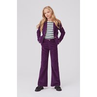 Harrietta ist eine dunkellilla Samtjacke mit Revers und Knopfverschluss auf der Vorderseite. Kombinieren Sie die Jacke mit einer passenden Hose.