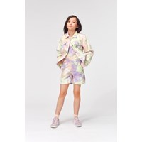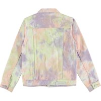 Heidi ist eine Jeansjacke in pastellfarbenem Tie-Dye. Die Jacke hat einen engen Verschluss auf der Vorderseite und zwei Taschen auf der Brust.
