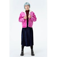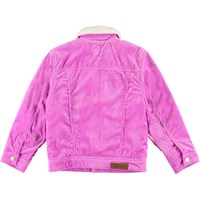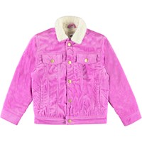 Hen ist eine Denim-Jacke in Blau mit Knopfverschluss und plüschigem Weiß im Inneren, was sie schön weich und warm macht. Die Denim-Jacke hat Taschen an den Seiten.