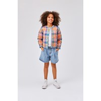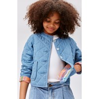 Henny ist eine gesteppte Wendejacke aus 100 % Baumwolle mit Perlmuttknöpfen.Außen ist Henny mit einem blauen Baumwollchambrey mit gesteppten Taschen, während die Innenseite mit einem karierten und mehrfarbigen Futter versehen ist. Bei Henny bekommst du 2 Jacken in 1.