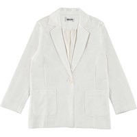 Hollie ist ein klassischer weißer Blazer. Der Blazer hat zwei Taschen auf der Vorderseite und einen einfachen Knopf zum Schließen.