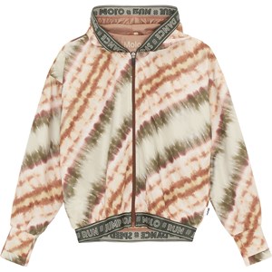 Ophelia ist eine luftige Sportjacke mit Batikdruck in Grün und Beige. Die Jacke hat einen Reißverschluss und eine Kapuze sowie eine braune Einfassung mit Text. Die Jacke ist Teil der Sportkollektion von Molo, die dazu beiträgt, Mode und Sport enger miteinander zu verbinden. Kombinieren Sie Ophelia mit einem der passenden Styles aus der Sportkollektion von Molo für einen kompletten und coolen Look. Die Sportkollektion von Molo wird mit einer einzigartigen Hochleistungstechnologie namens HeiQ Smart Temp hergestellt, die die natürliche Kühlung des Körpers unterstützt. Die Kühlfunktion wird aktiviert, wenn der Körper heiß und verschwitzt ist. Die Kühlfunktion wird deaktiviert, wenn der Körper heiß und verschwitzt ist. HeiQ Smart Temp sorgt für optimalen Komfort und Leistung. Unabhängig als sicher für die Haut getestet.