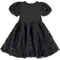 Cadrianna ist ein festliches schwarzes Kleid mit plissierten Blumen, die einen 3D-Effekt erzeugen. Das Kleid hat einen Reißverschluss am Hals.
