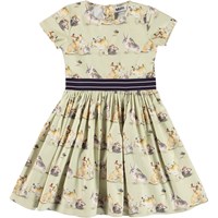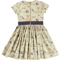 Candy ist ein hellgrünes Kleid mit Aufdruck verschiedener Tiere. Das Kleid hat kurze Ärmel und einen elastischen Streifenbund. Das Kleid schließt mit einem Reißverschluss am Hals.