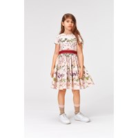 Candy ist ein rosa Kleid mit kurzen Ärmeln und Blumendruck. Das Kleid ist aus Popeline mit Stretch-Einsatz, wodurch es unglaublich angenehm zu tragen ist.
