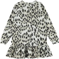 Carlotta ist ein Sweatshirt-Kleid mit Allover-Print wie das Fell des Schneeleoparden. Das Kleid hat eine geräumige Passform und lange Ärmel sowie einen kleinen Rock unten.