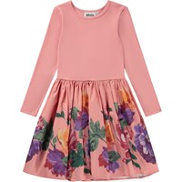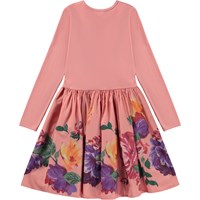 Pinkfarbenes knielanges Kleid mit rund geschnittenem Rock aus Popeline mit Aufdruck. Der Druck besteht aus wunderschönen, handgemalten Blumen und wenn Du genau hinsiehst, kannst Du Pinselstriche erkennen. Dieses Kleid besteht aus 100% Baumwolle, hat einen Rundhalsausschnitt mit schmalen Rippbündchen, lange Ärmel, einen Popeline-Rock mit Aufdruck und eine normale Passform.