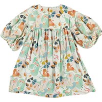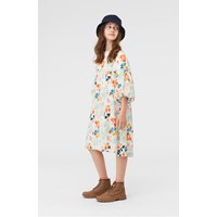 Catherine ist ein voluminöses und leichtes Kleid, das gut fällt. Das Kleid hat pastellfarbenen Druck und Puffärmel. Am Hals des Kleides befindet sich ein Reißverschluss.