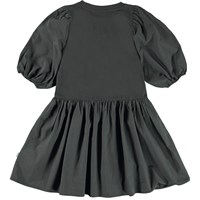 Cece ist ein dunkelgraues Kleid mit schönen voluminösen Ärmeln und einem Rock.