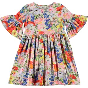 Chasity ist ein rosa Kleid mit aufgedruckten 'Hide and Seek', wo verschiedene Tiere sich im Blumendruck verstecken. Das Kleid hat voluminöse Ärmel, die dem Kleid eine schöne Silhouette verleihen. Ecocert Greenlife, certifikationsnr. 197496