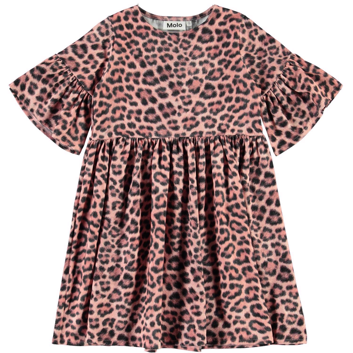 Chasity ist ein Kleid mit rosa Leopardenmuster. Das Kleid hat voluminöse Ärmel, die dem Kleid eine schöne Silhouette verleihen.